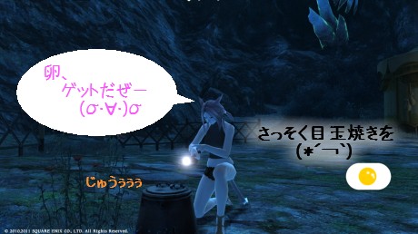 近づいてあっさりゲットした卵で目玉焼きを作ってみましたヽ(*´∀`)ノ